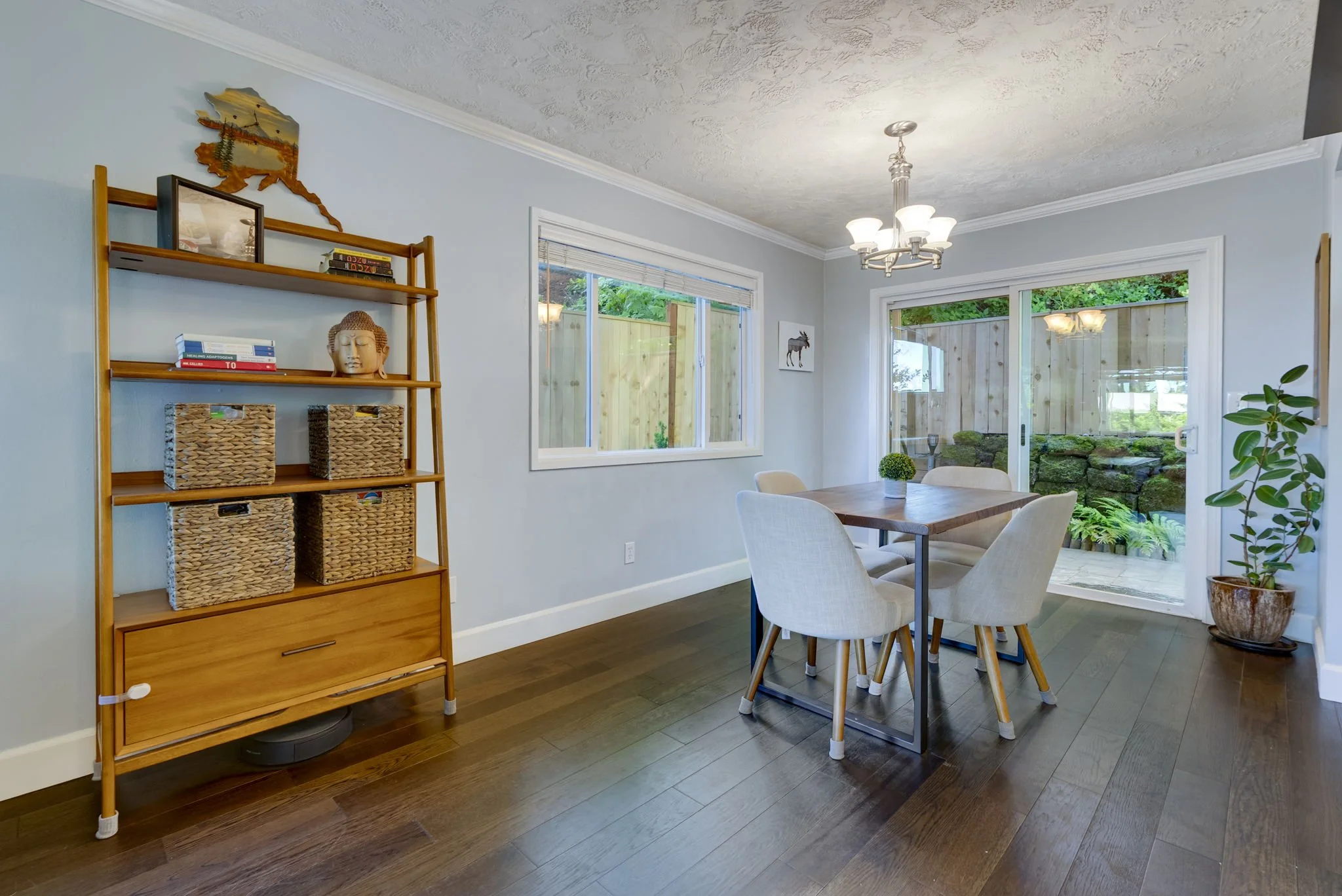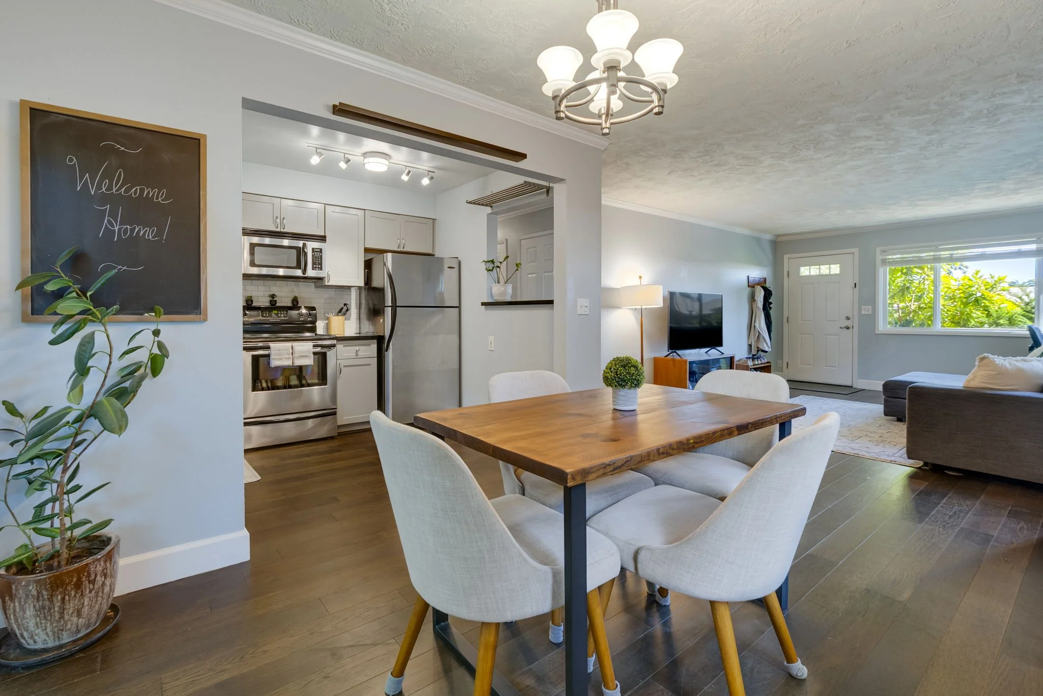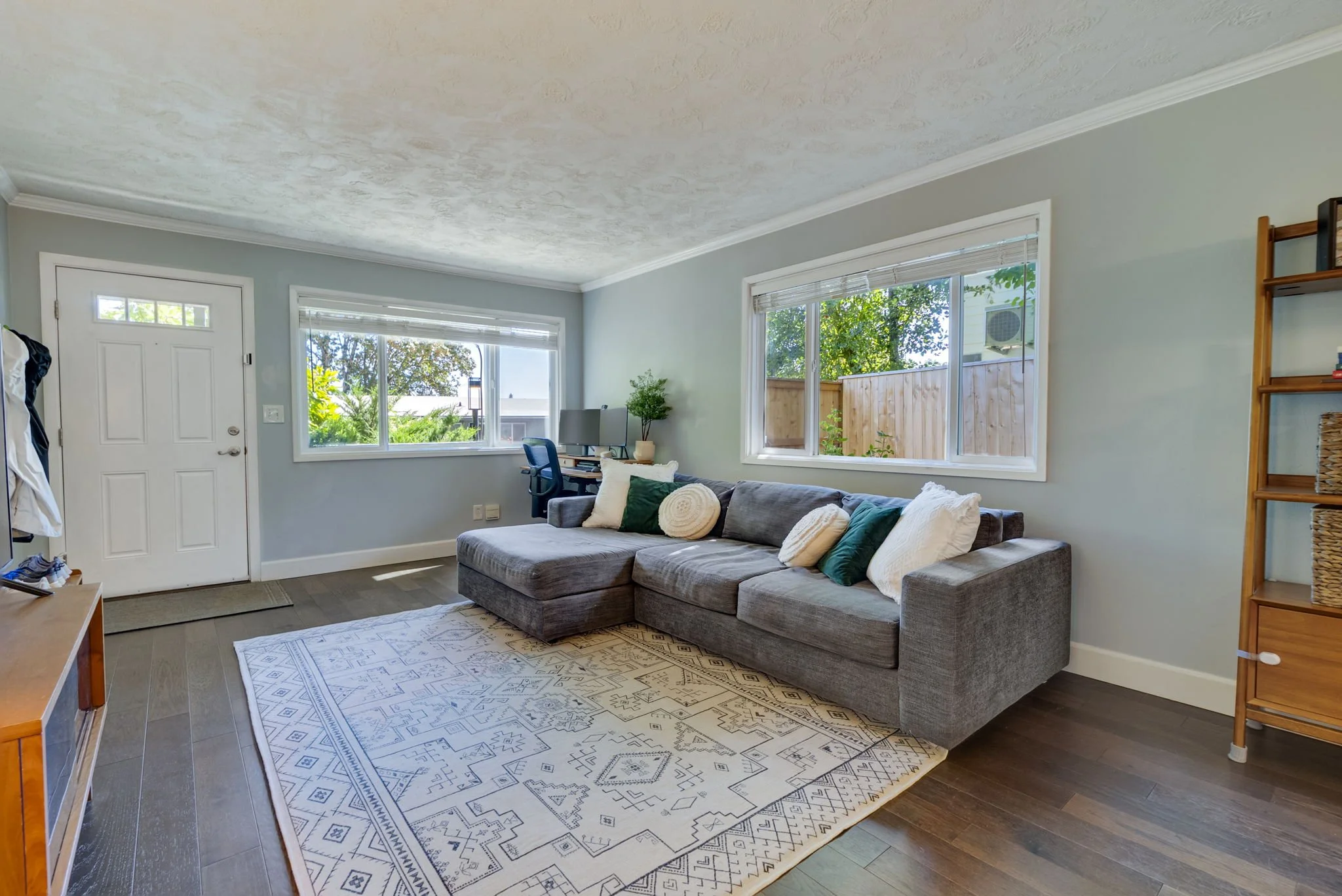 Inside, fresh interior paint and modern touches—including a new bathroom vanity and energy-efficient double-pane windows—create a clean, move-in-ready backdrop for your life. The open floor plan flows easily from a spacious living area to a dining space that opens directly onto your private patio through sliding glass doors. Whether you’re hosting friends or enjoying a quiet night in, the layout is designed to make you feel at ease.