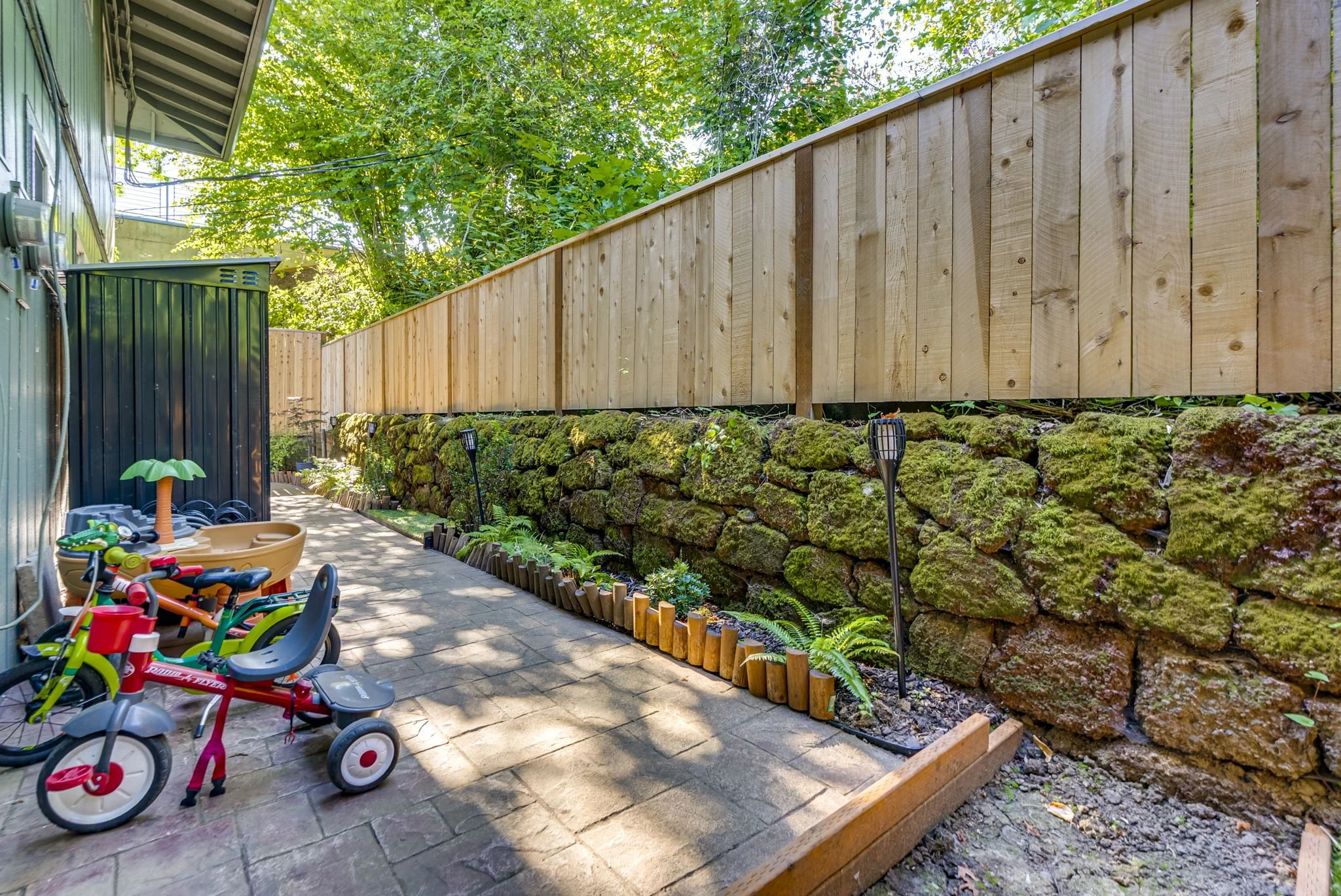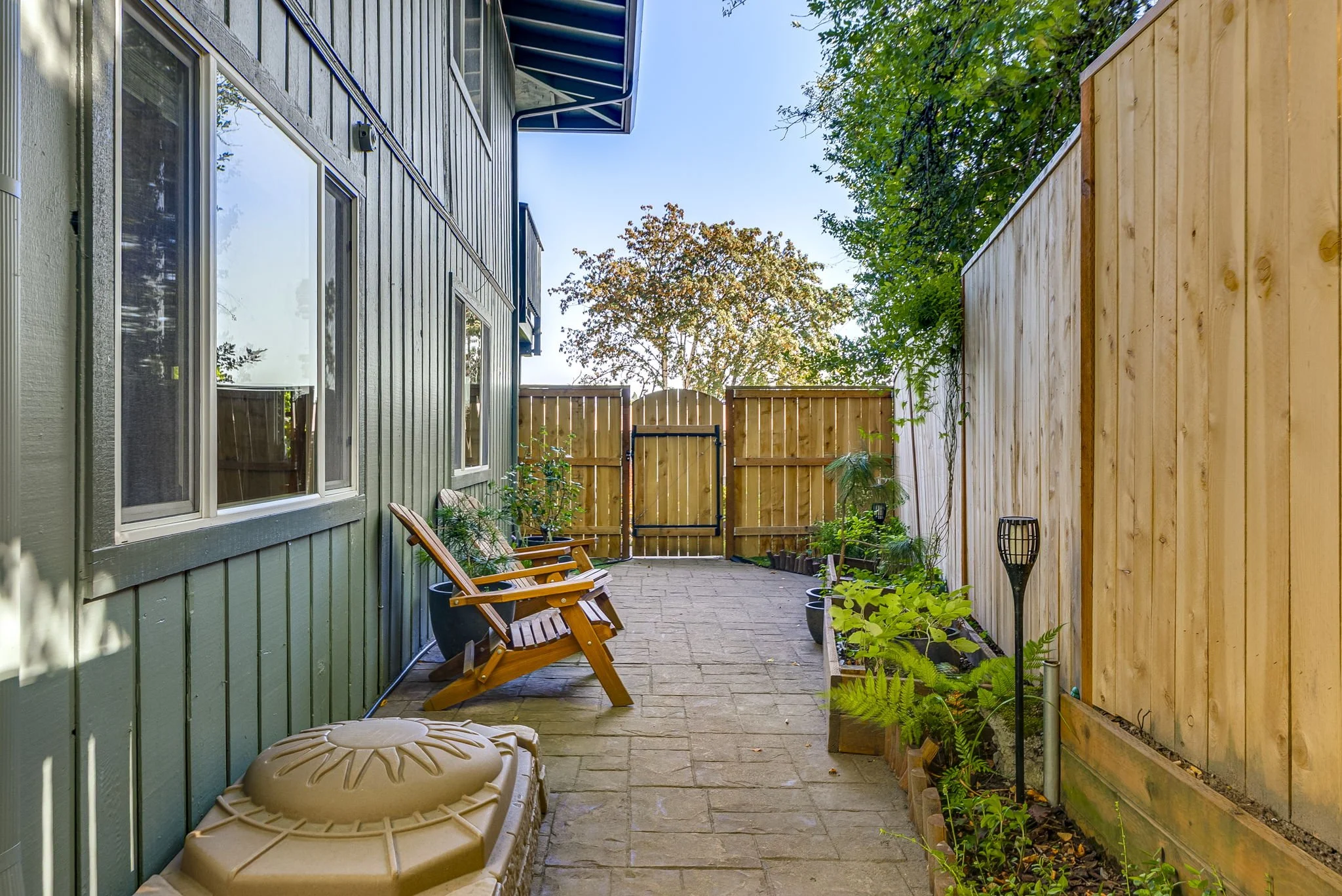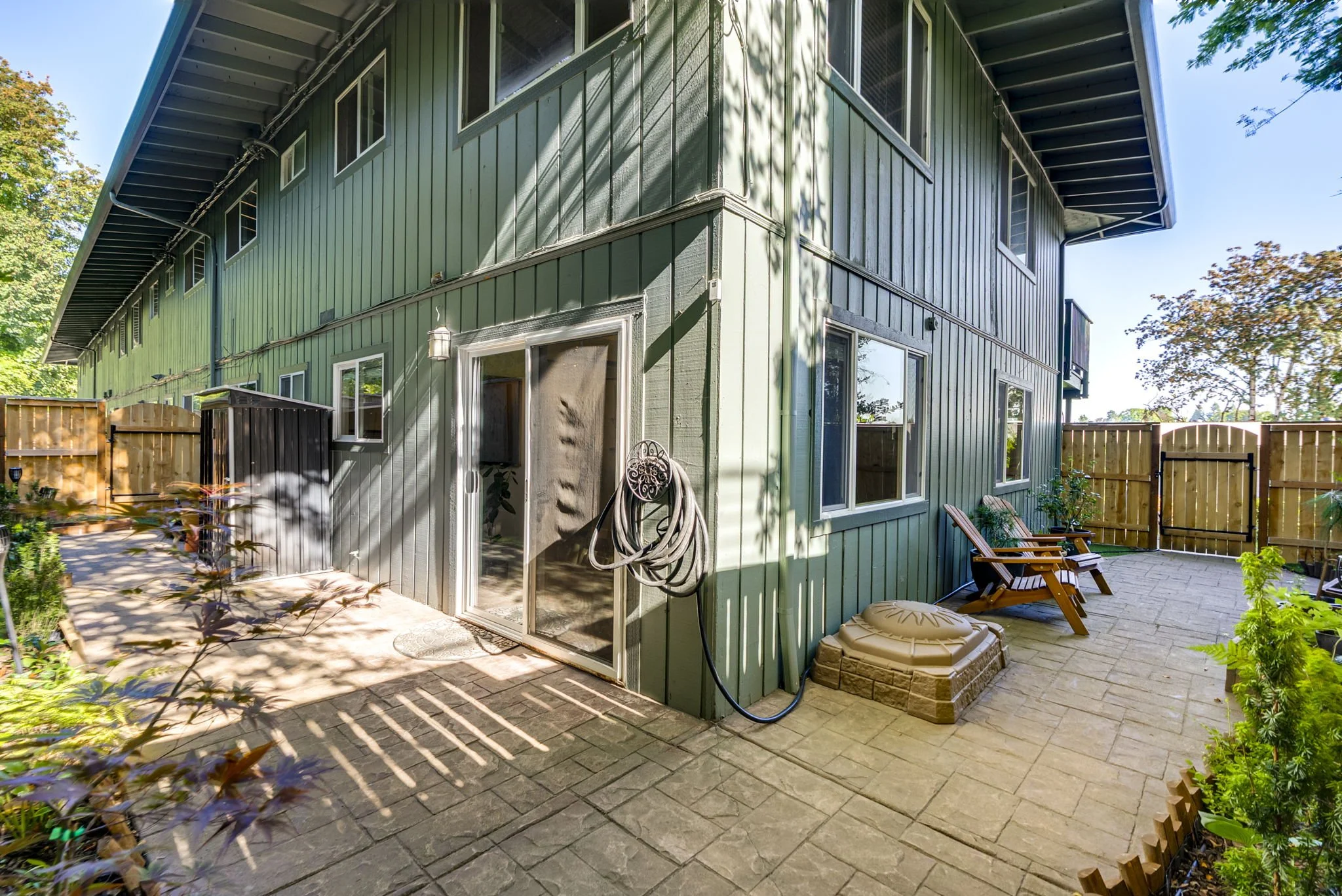 Only unit in the complex with a large, wraparound patio and garden with space for outdoor dining, play, pets, gardening, or just relaxing